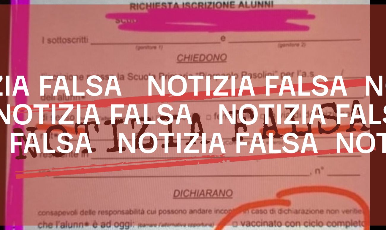 Il 9 settembre 2022 su Facebook è stata pubblicata la foto di un presunto modulo per l’iscrizione di alunni in una scuola primaria. Nel documento, di cui alcune parti sono oscurate, si legge che ai genitori, riguardo al sesso biologico del proprio figlio o figlia, viene chiesto di scegliere tra tre voci: «maschile», «femminile» e «in via di definizione». Nel modulo inoltre viene anche chiesto di segnalare se il bambino o la bambina sono vaccinati o non vaccinati.