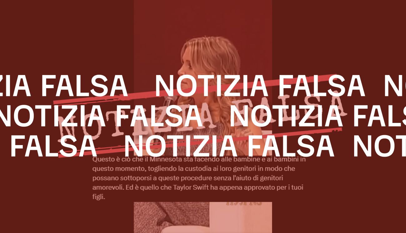 Il 16 settembre 2024 è stato pubblicato su X un video in cui si vede parlare la giornalista statunitense Megyn Kelly, ospite all’evento di Kansas City del Tour di Tucker Carlson, ex conduttore di Fox News. Come riportato dall’autore del post, la giornalista sostiene che Taylor Swift «voterà Kamala Harris a causa della posizione LGBTQ di Tim Walz». Per la giornalista, Tim Waltz, candidato vicepresidente scelto da Harris per le elezioni 2024, avrebbe stabilito che nello Stato del Minnesota – di cui è governatore – è possibile togliere la custodia ai genitori che negano ai propri figli la transizione di genere.