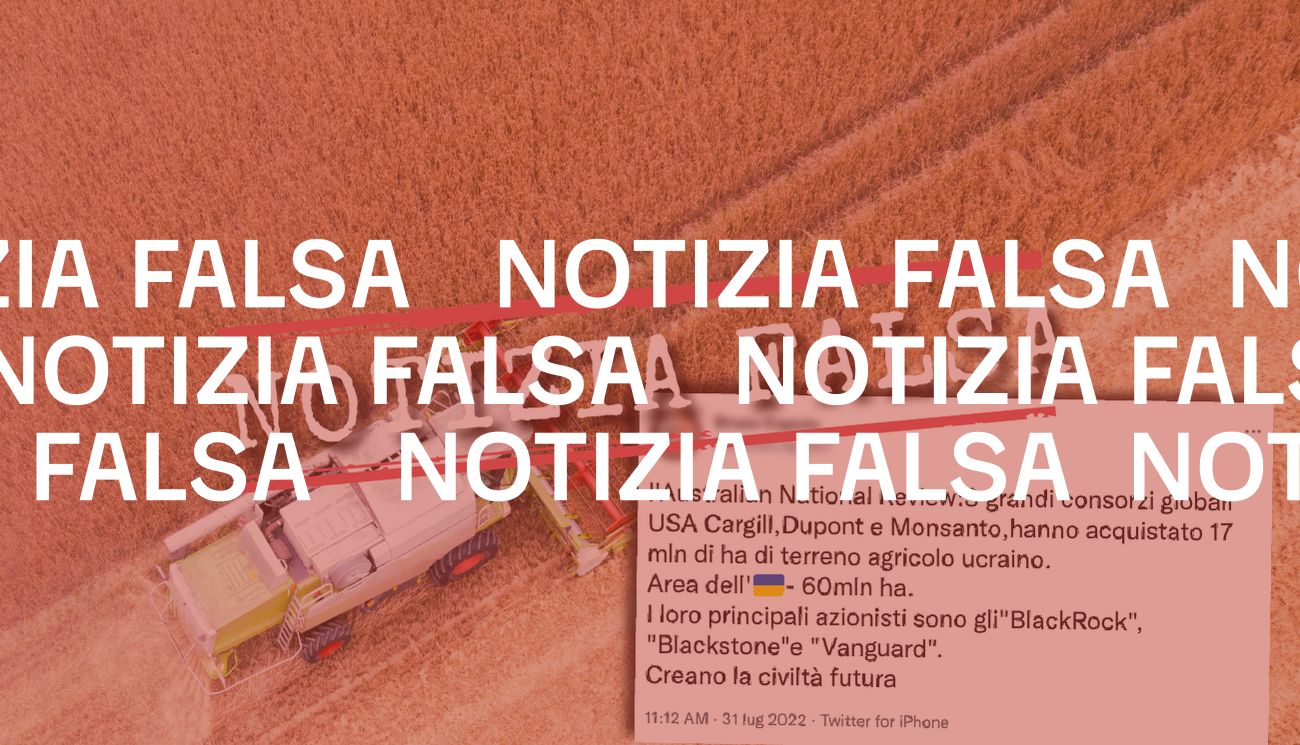 Il 31 luglio 2022 è stato pubblicato su Twitter un testo che recita: «L’Australian National Review: 3 grandi consorzi globali USA Cargill, Dupont e Monsanto, hanno acquistato 17 mln di ha di terreno agricolo ucraino. Area dell’Ucraina – 60mln ha. I loro principali azionisti sono gli “BlackRock”, “Blackstone” e “Vanguard”. Creano la civiltà futura».
