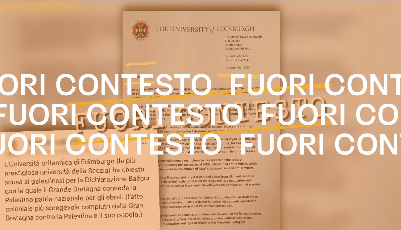 Il 18 dicembre 2023 è stata pubblicata su Facebook la foto di una presunta lettera dell’Università di Edimburgo datata 14 dicembre 2023. Secondo quanto si legge nel testo della missiva, l’università scozzese avrebbe chiesto pubblicamente scusa ai palestinesi per la dichiarazione di Balfour del 1917 «scritta da Arthur James Balfour, il rettore più longevo dell’Università (1891-1930), con cui concedeva la Palestina come sede nazionale per il popolo ebraico, negando al popolo indigeno palestinese l’autodeterminazione e la libertà nella propria patria».