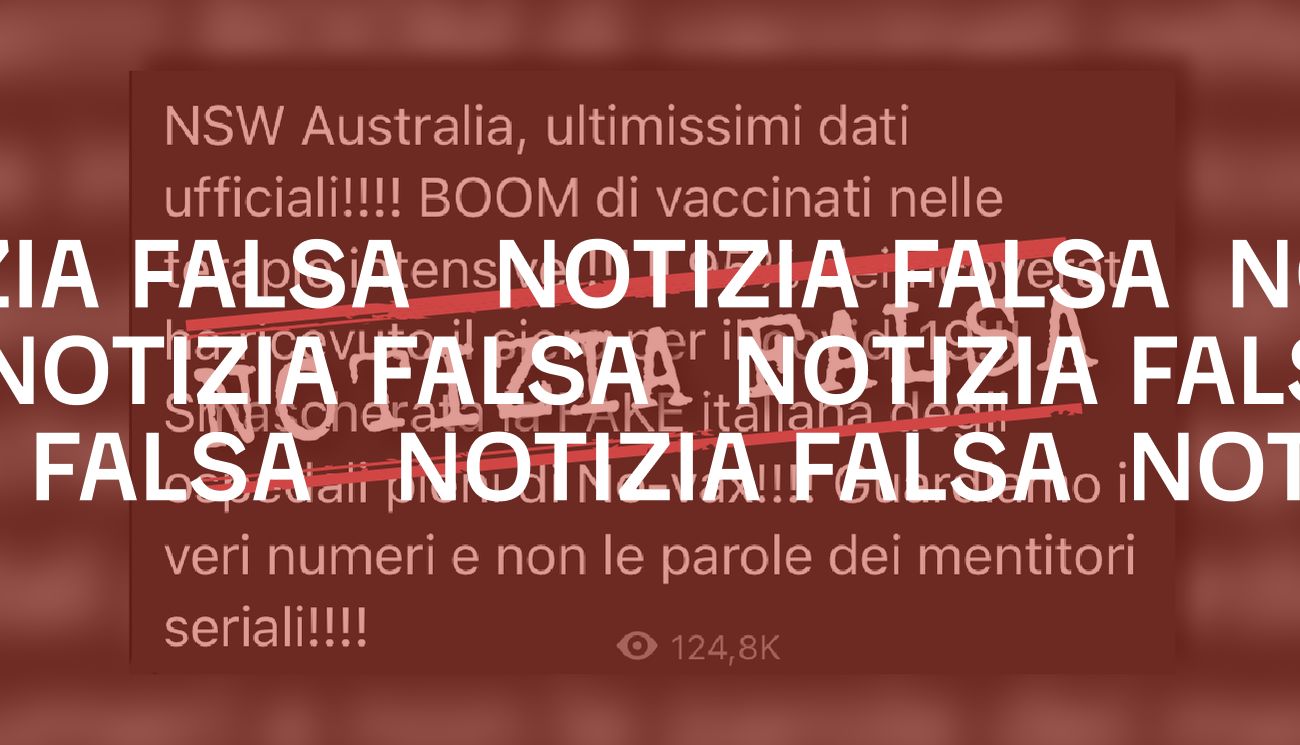 ll 3 febbraio 2022 la redazione di Facta ha ricevuto via WhatsApp una segnalazione che chiedeva di verificare il contenuto di un post condiviso su Telegram con questo testo: «NSW Australia, ultimissimi dati ufficiali!!!! BOOM di vaccinati nelle terapie intensive!!!! Il 95% dei ricoverati ha ricevuto il siero per il covid-19!!! Smascherata la FAKE italiana degli ospedali pieni di No-vax!!!! Guardiamo i veri numeri e non le parole dei mentitori seriali!!!!». Il post è accompagnato da un video della durata complessiva di quasi nove minuti, che riporta dei dati riferiti al periodo tra il 2 e l’8 gennaio 2022.