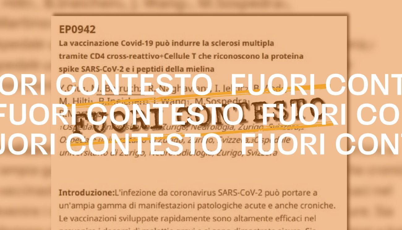 Il 28 maggio 2023 è stato pubblicato su Facebook lo screenshot di quello che appare come un paper scientifico intitolato “La vaccinazione Covid-19 può indurre la sclerosi multipla tramite CD4 cross-reattivo+Cellule T che riconoscono la proteina spike SARS-CoV-2 e i peptidi della mielina”.