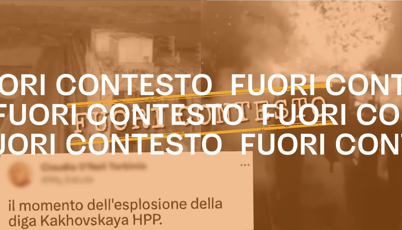 Il riferimento del contenuto oggetto di analisi è al crollo, avvenuto lo stesso 6 giugno, della diga della centrale idroelettrica di Nova Kakhovka, città portuale in Ucraina attualmente occupata dall’esercito russo. Il crollo ha causato ingenti danni e allagamenti nei terreni e villaggi limitrofi. L’esercito ucraino ha accusato la Russia di aver fatto saltare in aria la diga, mentre la Russia ha incolpato l’Ucraina. Ad oggi non è ancora chiaro cosa abbia causato il crollo dell’infrastruttura idrica e chi ne sia responsabile.