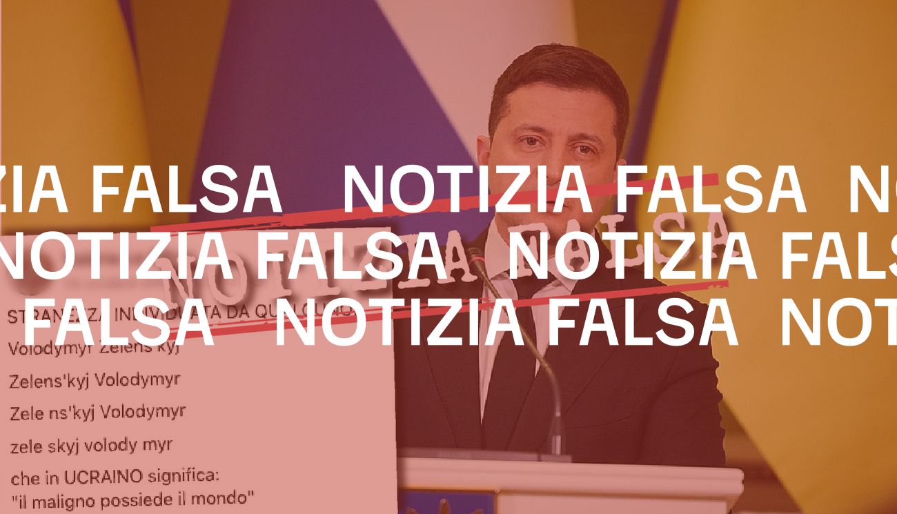 Il 14 ottobre 2022 su Facebook è stato pubblicato un post in cui si afferma che il nome  del presidente dell’Ucraina, Volodymyr Zelenskyy (anche trascritto dall’ucraino con Volodymyr Zelensky o Volodymyr Zelenskiy), significherebbe «il maligno possiede il mondo». Come prova nel post viene riportata questa frase «zele skyj volody myr» che in ucraino si tradurrebbe con l’espressione riportata in precedenza.