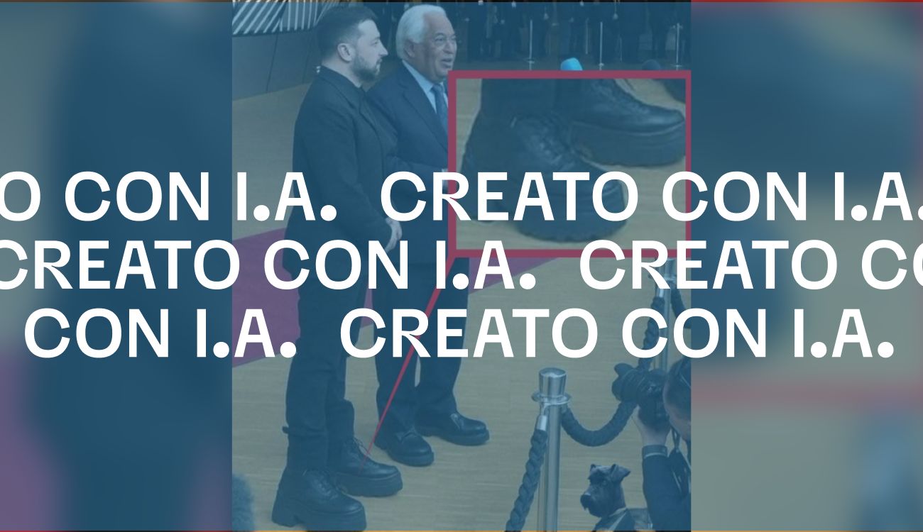 Il 25 ottobre 2025 su X è stata condivisa un’immagine di Volodymyr Zelensky insieme ad Antonio Costa, presidente del Consiglio europeo, mentre posano davanti un fotofgrafo nella sede del Consiglio europeo, a Bruxelles. Nella foto il presidente ucraino appare con una vistosa suola delle scarpe rialzata. Chi l’ha condivisa, ha commentato che Zelensky avrebbe «le scarpe con il trucco» per nascondere il fatto di non essere alto.