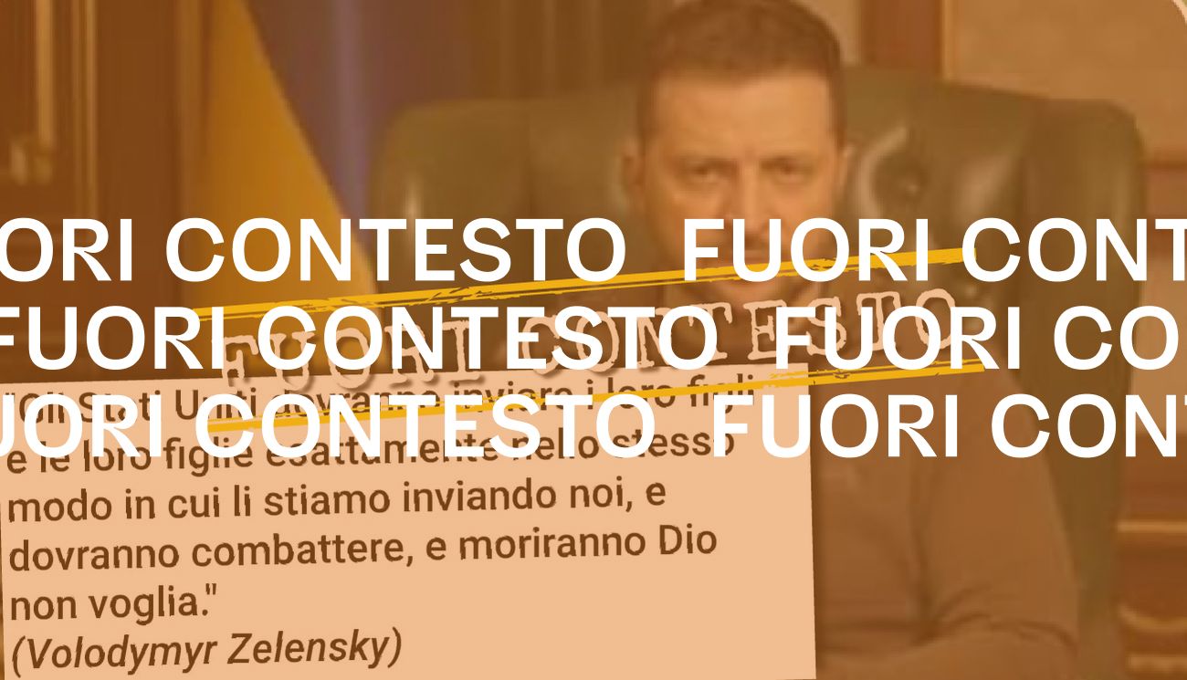 Il 1° marzo 2023 su Facebook è stato pubblicato un’immagine che riporta una presunta dichiarazione rilasciata da Volodymyr Zelensky. Il presidente ucraino avrebbe dichiarato «Gli Stati Uniti dovranno mandare i loro figli e le loro figlie esattamente nello stesso modo in cui mandiamo nostri i figli e figlie in guerra e dovranno combattere… e moriranno…».