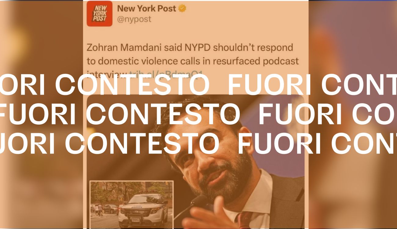 Il 20 ottobre 2025 è stato pubblicato su X lo screenshot di un articolo del New York Post intitolato, in inglese, “Zohran Mamdani (candidato sindaco democratico di New York, ndr) ha affermato, in un’intervista podcast riapparsa, che la polizia di New York non dovrebbe rispondere alle chiamate per violenza domestica».