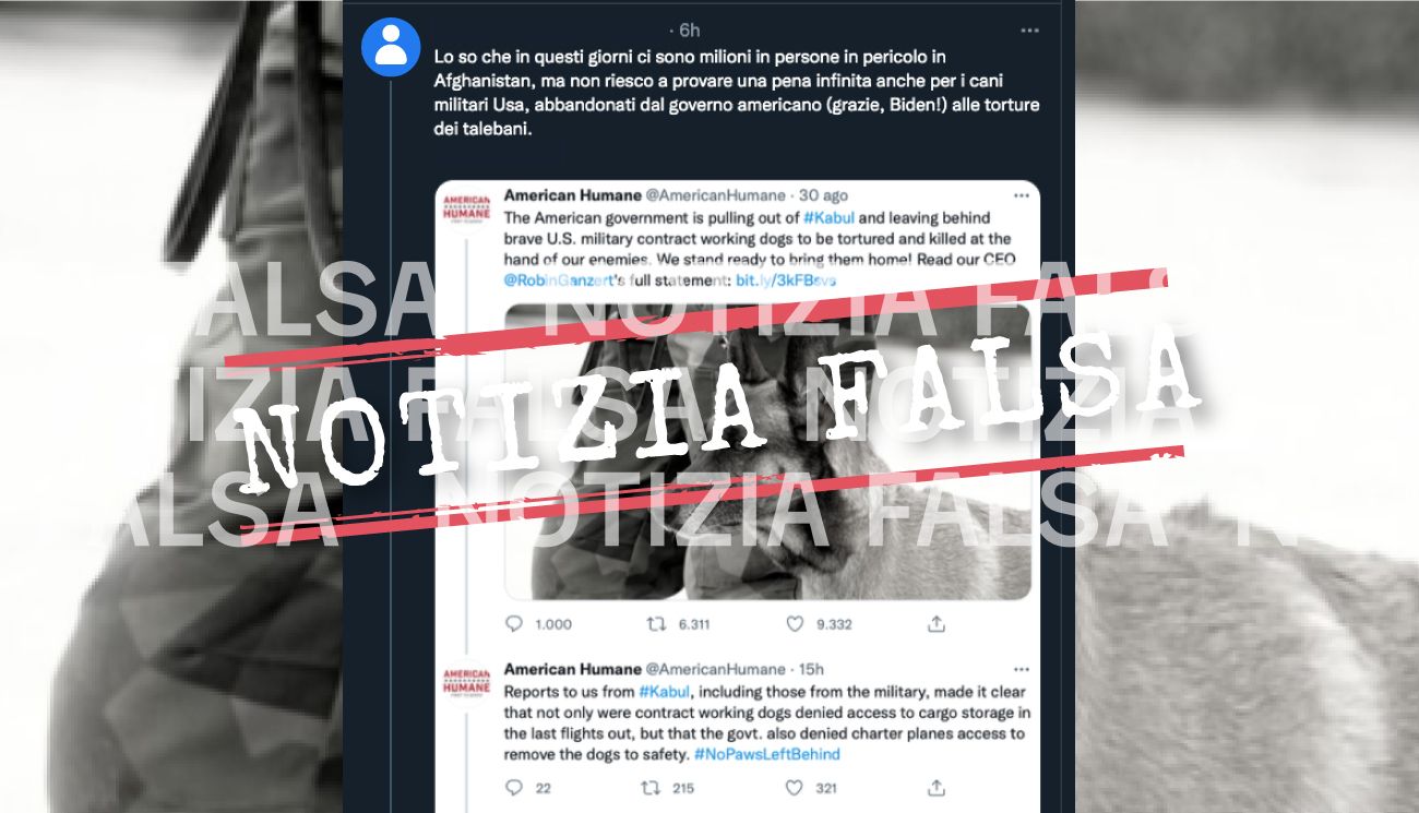 No, il governo americano non ha abbandonato in Afghanistan i «cani militari Usa»