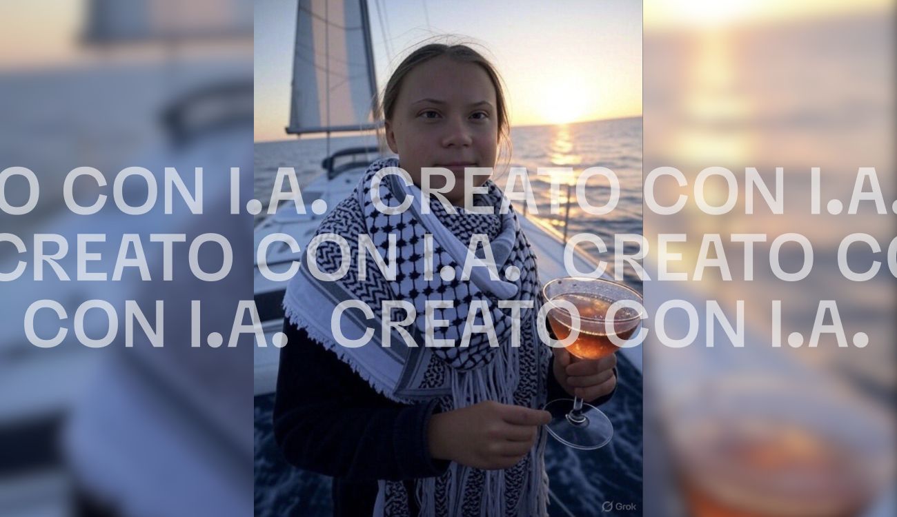 Questa foto di Greta Thunberg con un cocktail in mano a bordo di una nave è falsa