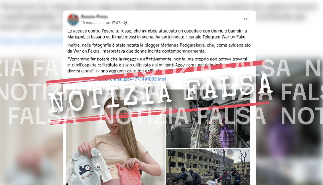 Secondo molti post, circolati su Facebook a partire dal 10 marzo 2022, la donna ritratta nelle immagini si chiamerebbe Marianna Podgurska (o Marianna Podurskaya) e sarebbe in realtà «una modella blogger di bellezza» ingaggiata dal governo ucraino per inscenare un falso attacco sui civili da parte dell’esercito russo. Il riferimento è all’attacco aereo che il 9 marzo 2022 ha parzialmente distrutto i reparti di pediatria e maternità dell’ospedale di Mariupol, uccidendo tre persone (tra cui un bambino) secondo le autorità ucraine.