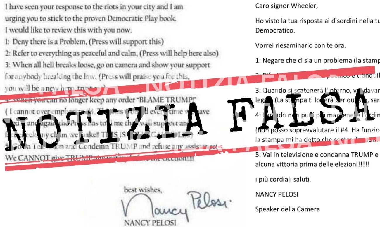Il computer di Pelosi, secondo l’uomo, sarebbe stato portato via da «Forze speciali, che si erano mescolati con gli Antifa», esponenti della sinistra radicale. Il video è accompagnato da un messaggio in italiano, scritto da chi ha pubblicato il post su Facebook, in cui si legge che la persona che riporta queste informazioni è il «tenente generale Thomas Mcinerney».