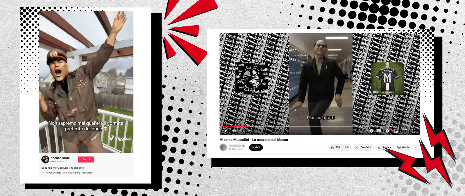 On TikTok and YouTube it can be found AI-generated videos of a Mussolini avatar dancing merrily on a stage, in school hallways, and on a basketball court, often to catchy original songs praising the Duce. The lyrics of one such song, for example, go: “’M’ like Mussolini / everybody likes me / moms and children.” The song, written by an Internet user, has likewise been used by other profiles to accompany images, memes, or fascist propaganda videos, or clips in which “gym bros”, boys obsessed with working out, show themselves doing physical activities; after all, masculinity and virility are emblems of fascism.