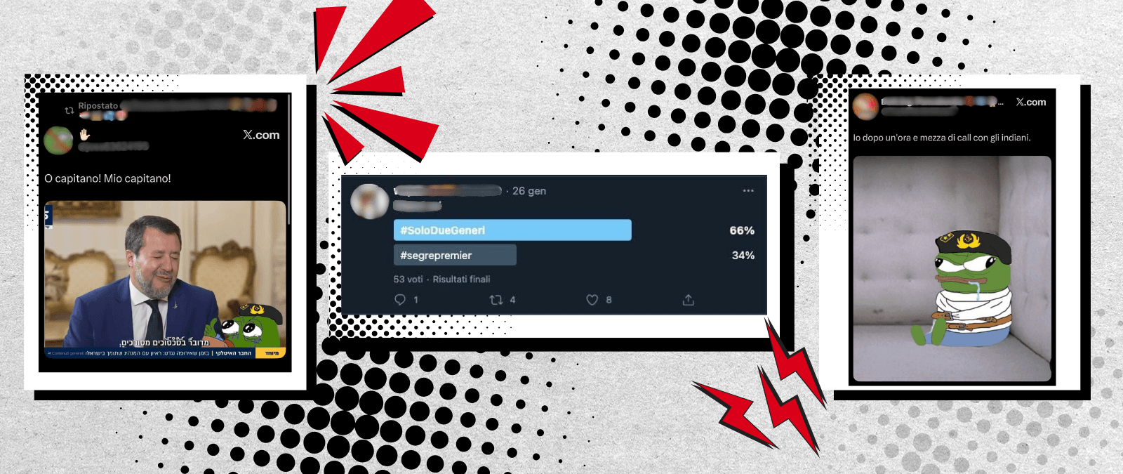 On X, Facta identified in 2021 the so-called mattonisti (“bricklayers”), a heterogeneous group of several hundred Italian-language X accounts, united by heavy use of post-irony (a register that mixes serious and ironic intents, making the difference between the two indistinguishable) and by the sharing of provocative, low-quality memes (what is known as “shitposting”). A mix that appears harmless, but behind which surface causes dear to the far right such as anti-abortionism, transphobia, and more generally the exaltation of authoritarianism in all latitudes.