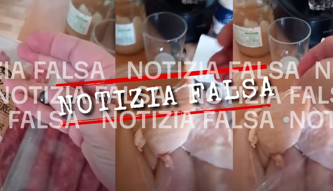 Il 3 luglio su Facebook è stata pubblicata una foto che mostra in primo piano una persona con una pettorina di colore blu e una mascherina bianca mentre versa dentro un contenitore pieno di carne cruda una sostanza liquida da una bottiglia bianca. L’immagine è accompagnata da questo commento, scritto da chi l’ha pubblicata su Facebook: «Pollo trattato al cloro per eliminare il cattivo odore».